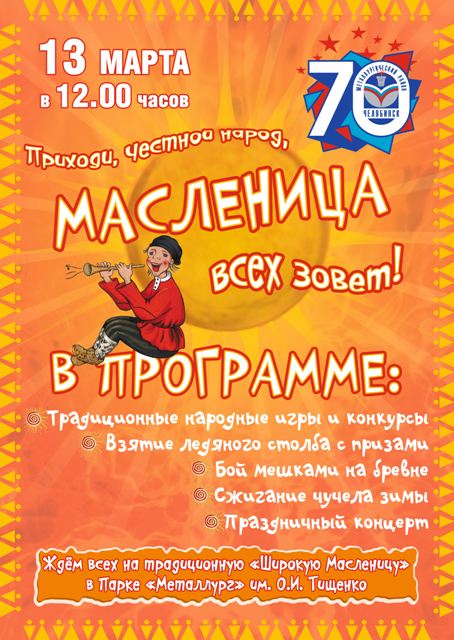 13 марта в Металлургическом районе пройдут массовые масленичные гуляния. Местом праздника, как и в прошлом году, выбран любимый жителями нашего района парк «Металлург» им. О.И.Тищенко....